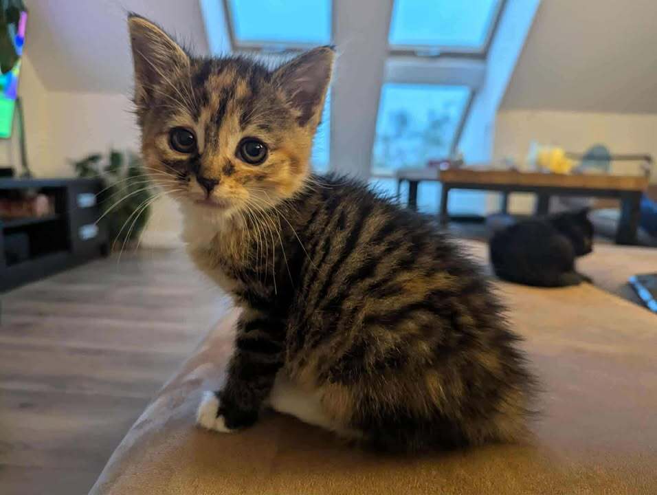 Andrea ma 3 miesiące i jest prawdziwą kocią księżniczką. Trafiła do nas jako maleństwo z zaawansowanym kocim katarem, ale dziś jest już zdrowa i gotowa do adopcji. Przebywa w domu tymczasowym razem ze swoją czarną kocią przyjaciółką, z którą jest bardzo zżyta, wspólny dom byłby idealny, choć nie jest to konieczność.