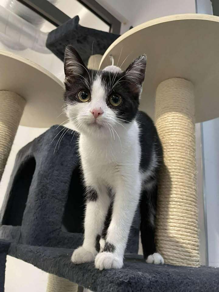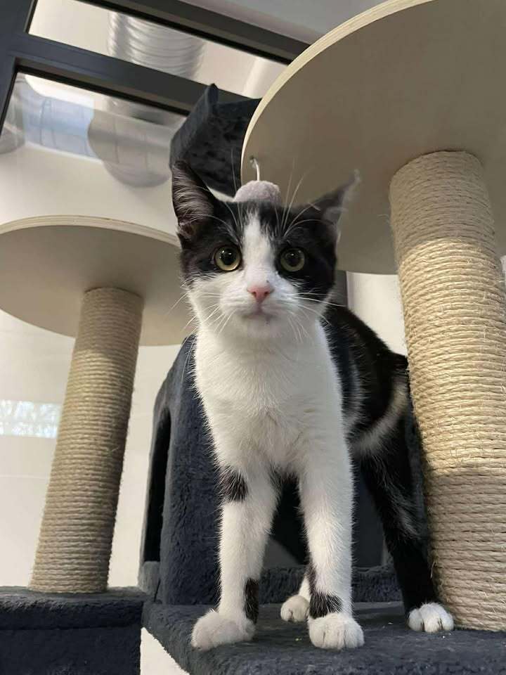 Becia ma 4 miesiące i jest niezwykle towarzyską kicią. Chodzi za człowiekiem krok w krok i najchętniej nie schodziłaby z kolan. Uwielbia mokre jedzonko, im więcej sosiku, tym większy apetyt. Akceptuje inne kociaki i z każdym potrafi się dogadać.