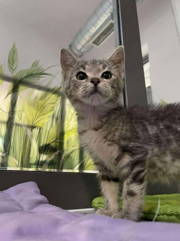 Emi ma 3 miesiące i zachwyca wyjątkowym, beżowo-srebrzystym umaszczeniem. To prawdziwa dusza towarzystwa, uwielbia być noszona, przytulana i głaskana. Zgadza się z innymi kotami i zawsze chce być w centrum uwagi.