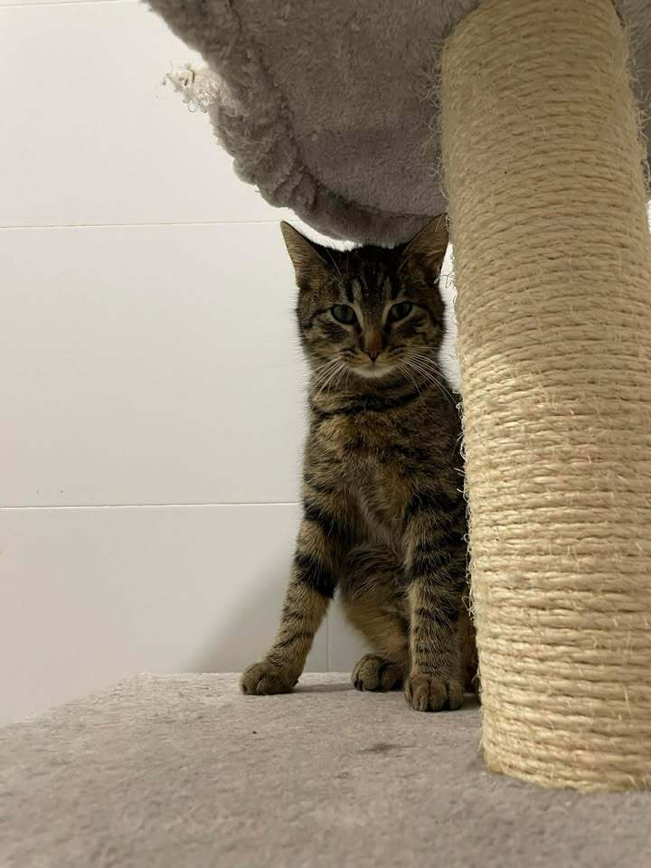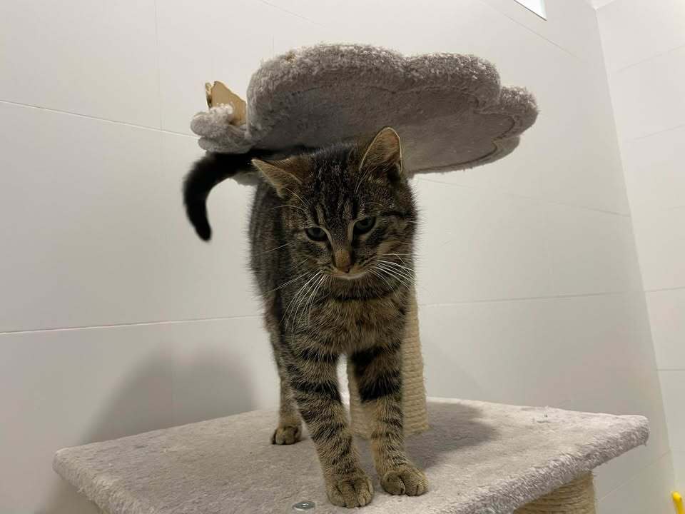 Gabryś ma rok i jest wspaniałym, miziastym kocurkiem. Lubi obserwować świat z wysokości swoich ulubionych miejsc, a z innymi kotami chętnie śpi i ociera się o nie z sympatią. Unika jednak silnych, dominujących kotów, wtedy wycofuje się i ucieka. To delikatny chłopak, który najlepiej odnajdzie się w spokojnym towarzystwie.