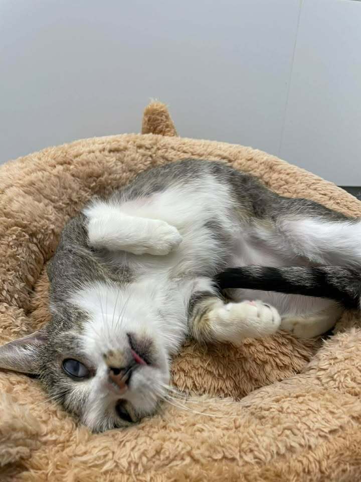 Szymka ma rok i jest wyjątkową, bardzo wrażliwą kotką. Ma oczopląs, przez co gorzej odnajduje się w otoczeniu i bardzo boi się innych kotów, dlatego szukamy dla niej domu bez zwierząt. To jednak niezwykle kochana i miziasta kotka, uwielbia dotyk, wtula się w człowieka i szuka bliskości. Szymka potrzebuje spokojnego domku, cierpliwości i poczucia bezpieczeństwa.