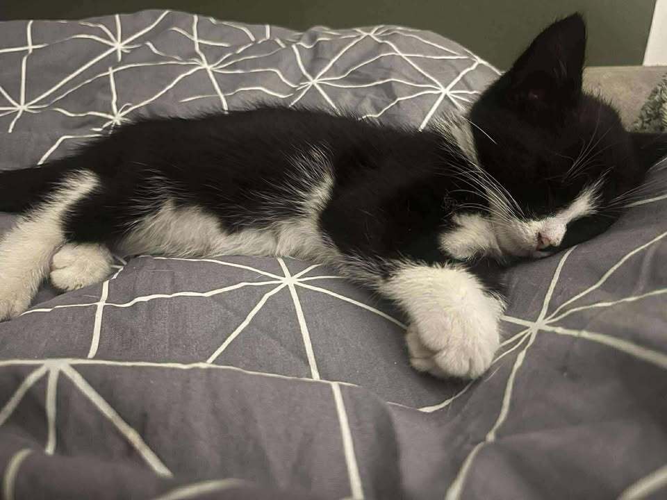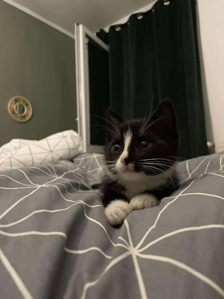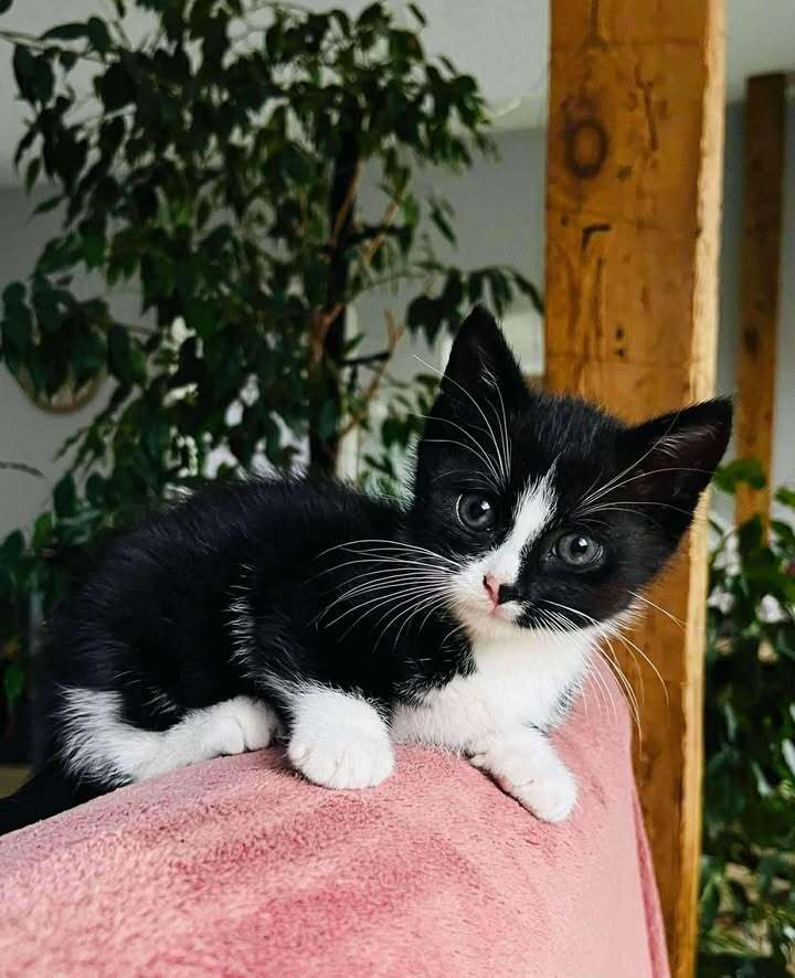 Wafel ma 3 miesiące i jest prawdziwym wulkanem energii. To radosny, rozbrykany kociak, który kocha zabawę i towarzystwo innych zwierząt. Przebywa w domu tymczasowym, gdzie mieszka z kotami i psami, więc świetnie odnajdzie się w podobnym domku. Pięknie korzysta z kuwety, uwielbia jeść i mruczy przy każdym głaskaniu. Szuka kochającego, niewychodzącego domu.