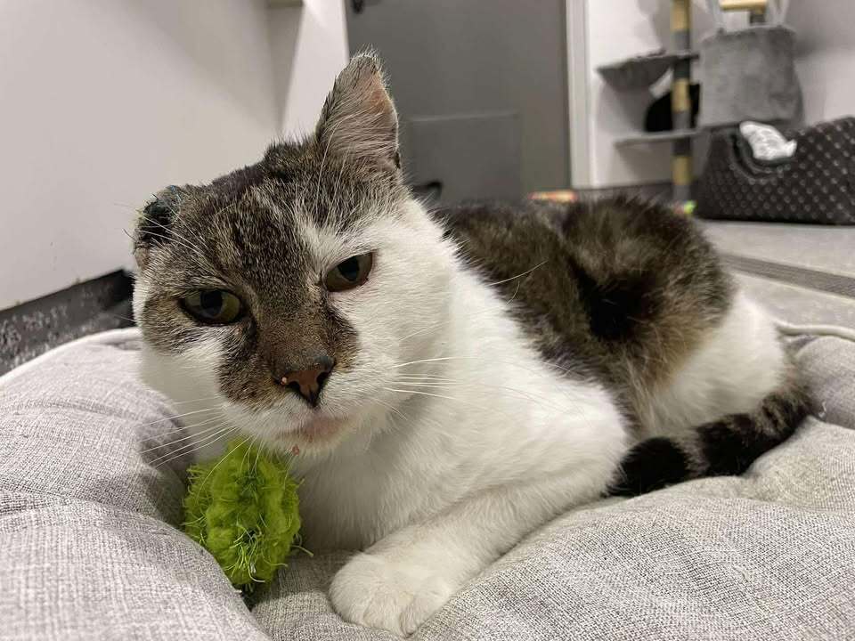 Zenek ma około 5 lat i życie nie było dla niego łaskawe. Był kotem wolnożyjącym, nosi na sobie ślady dawnych ran, a jedno uszko musiało zostać amputowane. Mimo trudnej przeszłości to spokojny, łagodny i bardzo wdzięczny kocurek. Uwielbia jedzonko, miękkie posłania i powoli uczy się, że dotyk człowieka może być czymś dobrym. Szuka spokojnego domu, w którym wreszcie zazna ciepła i bezpieczeństwa.